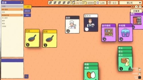 2、餐厅经营与升级成长:从基础厨房开始,通过服务客人赚取金币与声誉。利用收益解锁更高级的卡牌,升级厨具设备,如将普通小刀升级为主厨刀。逐步扩展你的卡组库,优化出餐流程,将小餐馆经营成备受瞩目的美食殿堂。