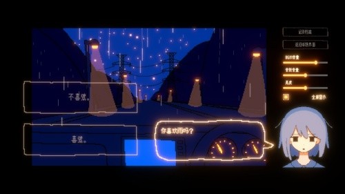 1、独特的叙事舞台:游戏将整个故事场景设定在一辆行驶于雨夜的汽车内,空间极其有限,仅包含玩家与少女两人。这种密闭而流动的空间,为深度、私密的对话创造了绝佳条件。