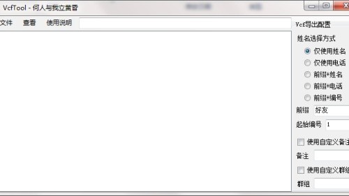 3、灵活的自定义输出:在从VCF转换到Excel或TXT时,软件提供多种输出方案。用户可以选择“仅使用姓名”、“仅使用电话”,或采用“前缀+姓名”、“前缀+电话”等组合模式,并可自定义前缀内容、群组分类,满足不同的整理和标识需求。