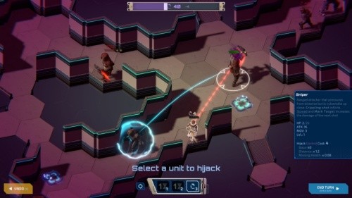 1、核心“劫持”战术系统:游戏的核心是“劫持”机制。玩家控制的寄生体本身几乎没有战斗能力,但可以消耗行动点,尝试劫持视线内的敌方赛博士兵。成功劫持后,你将完全控制该单位,可以使用其全部武器、技能和移动力,而原宿主单位将变为你的傀儡。