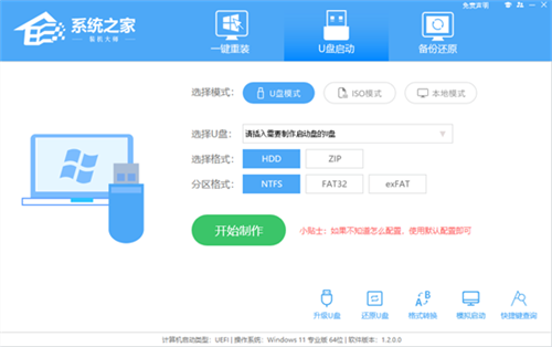 需要时一键制作U盘启动盘进行一键U盘装系统,携带便捷;