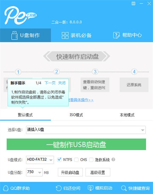 4、然后设置制作参数,如U盘模式,U盘格式及分配大小,如果不了解的,最好默认即可,无须设置。