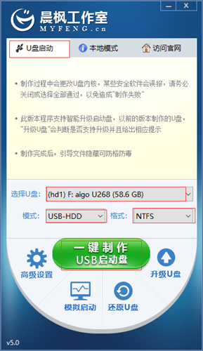 晨枫U盘启动工具官方版是一款基于新型万能USB启动盘制作软件Fbinst制作而成,使用这款U盘启动制作工具可以制作出一款具有独特的UD隐藏分区,隐藏区与可见区独立存在的U盘启动工具盘,这样的U盘启动不会被病毒影响,让我们的U盘启动盘更加的安全!兼容性更好,支持新旧设备!有需要的用户欢迎下载使用!