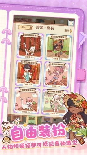 ● 自由装扮:人物和猫猫都可搭配各种造型