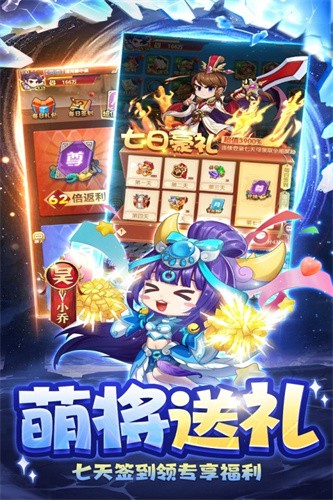 神将时空破解版内置菜单是一款深受玩家青睐的以三国为题材的策略卡牌对战类回合制游戏,游戏采用Q萌可爱的奶嘴武将形象,动画风格以及炫酷的技能特效,带给玩家极佳的视觉及游戏体验,游戏为你提供了丰富的武将,每位武将都有专属的技能以及属性,你可以根据自己的喜好来培养升级武将,搭配出最强的阵容,玩家可以培养升级武将,解锁武将技能,搭配羁绊武将,增加队伍战力,让战斗更轻松,同时游戏内还提供了副本BOSS、组队挑战、藏宝图、比武大会等丰富玩法,不同的玩法将给你带来不一样的游戏乐趣。