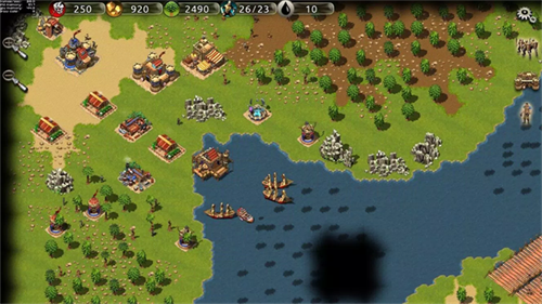 3、建立强大的海军力量,在地图上寻找新的矿产资源和木材资源,增加建筑数量,不定期派遣士兵外出作战,提高战斗力。