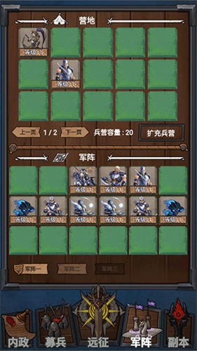 一、玩家进入符石远征军这款游戏以后,系统是送了两个军阵的士兵的,第二套的士兵资质要比军阵一要好的,所以我们一进去选用军阵二开始我们的冒险之旅。