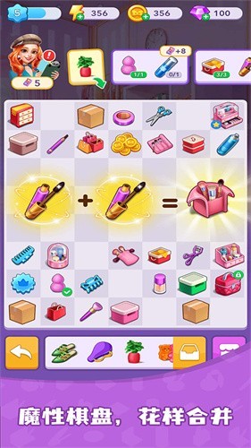 2.独特的合成玩法:游戏将合成与消除相结合,玩家需要找到相同的物品进行合成,解锁新的高阶容器。