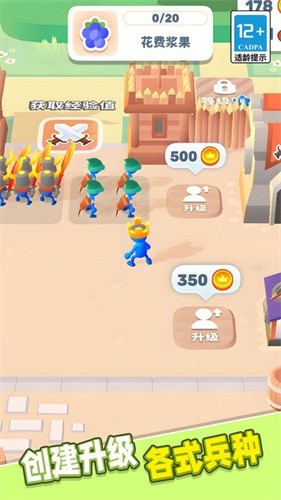 2、火柴人士兵随进程逐步解锁,战斗力层层进阶。