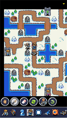 复古像素风呈现清晰战场格局,不同势力用鲜明色块区分,部队状态通过图标直观显示;每张地图都有专属主题元素,沙漠战场会呈现风蚀岩柱,雪原地图能看到飘落雪花。