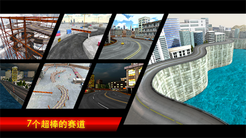 3、多样的赛道设置:游戏包含了7个精彩绝伦的赛道,如闹市区(白天&晚上)、建筑工地、过山车和额外的特技赛道,让您在不同的场景中体验漂移的快感。