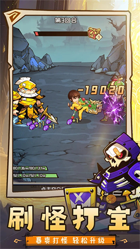 2、游戏采用轻松上手的点击式玩法,只需不断点击屏幕下方的攻击按钮,角色便会自动进行战斗。