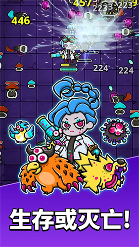 异变生存战折相思最新版本是一款Roguelike动作生存类手游,游戏中玩家将与被流放至地底的天才科学家Zen一起,在满是毒雾与突变生物的奥术朋克风暗黑卡通地下城求生,单手操作搭配自动战斗,体验快节奏割草与随机冒险,挑战多章节Boss战,破败科技与扭曲科学交织的卡通风世界,等你征服,除此之外,游戏中的怪物多样、有独特能力,推进过程中会不断刷新新的威胁,偶尔出现的小BOSS、毒区、突变增幅等环境因素,也让每局体验都不同,对此感兴趣的伙伴快来下载体验吧。