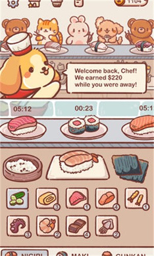 狗狗回转寿司破解版中文版是一款以制作寿司为主要玩法的模拟经营手游,在游戏中,玩家可以扮演一名狗狗,经营一家回转寿司店,通过制作美味的寿司,吸引顾客,提升店铺等级,最终打造成为一家知名的寿司连锁店,游戏里面的各种烹饪的食物类的玩法都是可以在这里面进行更多的制作的模式的,让玩家可以制作出更加美味的食物出来,整个游戏的画面设计感受是非常的温馨治愈的,无论是日常休闲还是长途旅行,它都能为玩家提供一个随时随地享受寿司经营乐趣的平台。