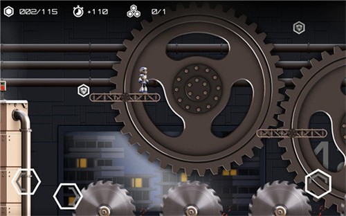 2、点击左下角的按钮,可以控制机器人四处移动,点击右下角的按钮可以控制机器人跳跃,灵活的移动,更好闯关。