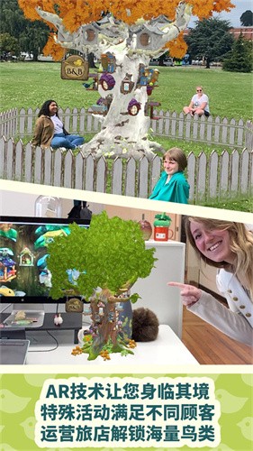 翼彼迎官方版安卓版是一款非常有趣的经营模拟治愈养成类游戏。该游戏采用卡通动漫风格打造,还将AR技术创新性的引入使用,让玩家可以以全新的视角开启游玩体验。玩家在游戏将继承一座名宿,玩家需要在枯老的树枝上打造各种不同的房间,吸引不同的鸟儿入住。玩家需要为前来入住的鸟儿,提供贴心的服务,获得更多的好评,升级自己的建造技艺。