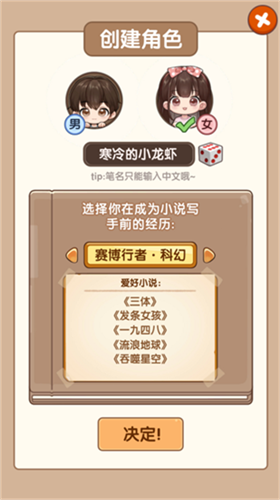 你将在写作过程中,随着写作熟练度提升你的写作能力与码字速度,开局选择题材尽可能的选择热门的题材去写作,而随着你的能力越来越强大,即使是冷门题材你也可以游刃有余的去发挥~