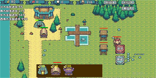3、在游戏的像素游戏风格中,玩家需要保护自己的士兵在生存的情况下提升实力,以及各方岛民的进攻。