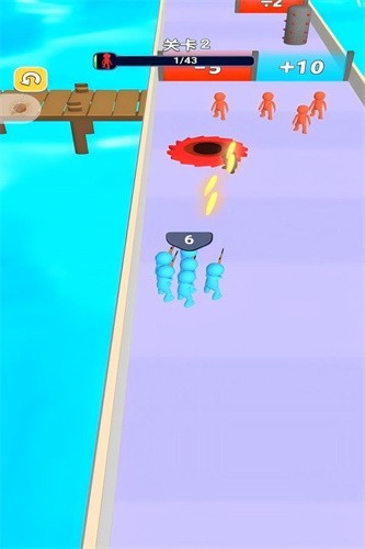 3、不断升级,增加己方人数,提高射击速度,消灭所有敌人。