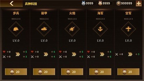 除装甲车战斗机自带轻机枪克制步兵外,步兵可上阵特种部队增加克制属性,如掷弹兵增加百分之42对装甲部队伤害,减免收到装甲百分之25伤害;苏瓦基骑兵增加对步兵百分之35伤害,减免收到火炮百分之25伤害;特种部队收到一定伤害会消失,变为普通部队