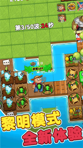 2、点击就能轻松开始游戏,十分清新的游戏风格,畅快的游戏趣味新服务,好玩的植物与农夫的传统游戏背景。