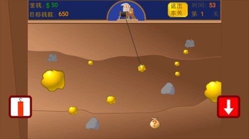 2、地下世界中除了各种稀缺矿石,还有不同的石头障碍哦,不要浪费时间,精准钩取吧;