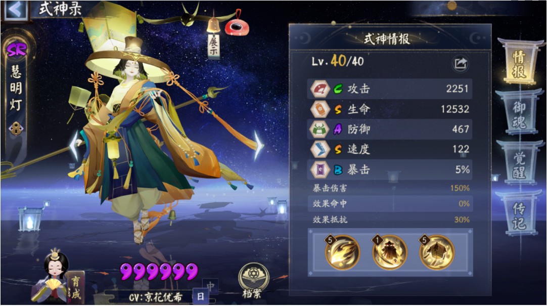 慧明灯是一名主要针对单体输出的辅助式神。拥有解控、治疗、挡伤、加防等多种效果。