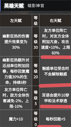 30级:友方单位阵亡时,对友方全体附加亢奋,攻击速度+10%,上限60%