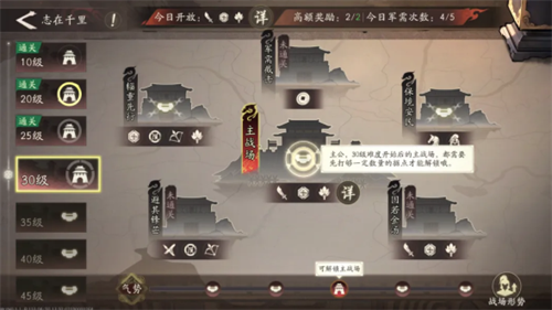 志在千里玩法还会同步的优化,主要是优化关卡的体验,可以解决25级到30级主战场难度跨度比较大的问题。让大家在刷道具的时候更加的顺利,另外还会新增加一个50级别的主战场。在这里你就可以刷到更多的道具,甚至也可以冲更高难度的明公,所以说这一下就有了新的目标。同时界面还会有一个新的细节调整,就算是新手在这一个操作的过程中也会变得比较轻松,可以迅速的获得所需要的道具。