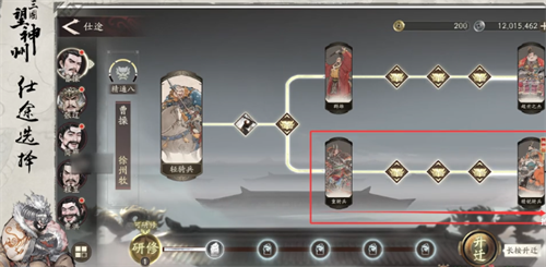 在仕途的选择上,每一条路线其实都可以给到曹操的角色碎片,这些碎片就可以用来升阶。但是兵种的路线一定要挑选下路的精锐骑兵,还有重骑兵。选择这一条线就可以让曹操拥有六格移动力,还可以迅速的提升机动性,关键是走位是比较灵活的,可以轻松的覆盖更多的队友,还可以迅速的提升辅助效率。
