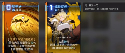 技能成长促进,1费技能卡,拥有50%的生命值治疗效果,且会触发两次预留效果,升级之后可以复制创造物。