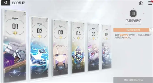 主线任务的核心机制就是以主战员和辅战员为主。主战员等级提升可以直接提高角色属性面板,合理分配潜力点可以解锁额外的属性加成或者增益效果,增益效果会在战斗中出现。抽取相同角色升级EGO等级,可以增加神卡、战斗被动、EGO技能和强化能力,最高可以升到六阶,大幅提高战斗输出和策略选择。辅战员为辅助型角色,可以提供能力值加成、被动效果,也可以释放主动大招,与主战员形成策略组合,提高整个队伍的战斗效率。