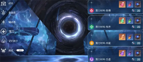 副本挑战主线任务分为普通和困难两种难度,第一次通过会获得大量经验奖励,是舰长升级的主要方式。为了提高战斗力,玩家可以通过副本获得升阶材料和培养资源。另外模拟副本也是获取资源的一种方式,分为战斗训练和超时空流域两种。战斗训练分为成长、主战员、辅战员、潜力、记忆碎片等子关卡,挑战难度高可获得金币、主辅战员升级材料、套装强化材料。超时空流域类似爬塔玩法,会提供大量的水晶和零晶,零晶可以在商店里换成稀有材料,给角色培养和阵容搭配提供强有力的支持。