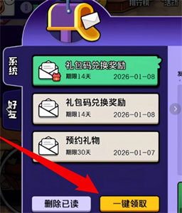 5、兑换成功以后,获取的奖励在邮件中领取,邮件也是在更多中可以看到